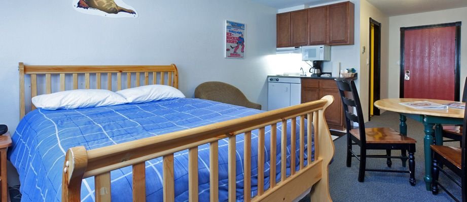 The Bulldog Hotel Silver Star's mid-mountain location offers charming, comfortable ski-in/ski-out accommodation for everyone. The one bedroom kitchenette room consists of one queen size bed in the main bedroom as well as a hide-a-bed in the living area. The room...