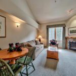 It features an efficiency kitchen, 2TV/DVD, complimentary Wireless Internet Access, gas fireplace, common use area for ski storage, coin operated laundry facilities and common hot tub area. The dining room table seats 4 people. This 571 sq. ft. condo is roadside with views of Mt. Morrisey. It can accommodate up to 4 people. No pets and no smoking.